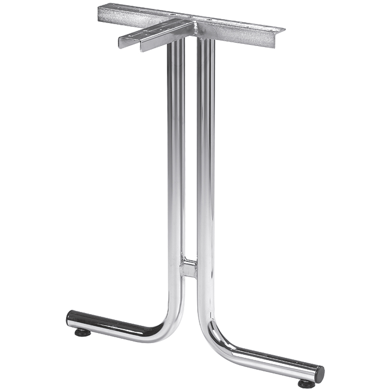 Stahlrohr poliert verchromt, T-Fuss gebogen mit 2 Ausleger aus Rundprofil,