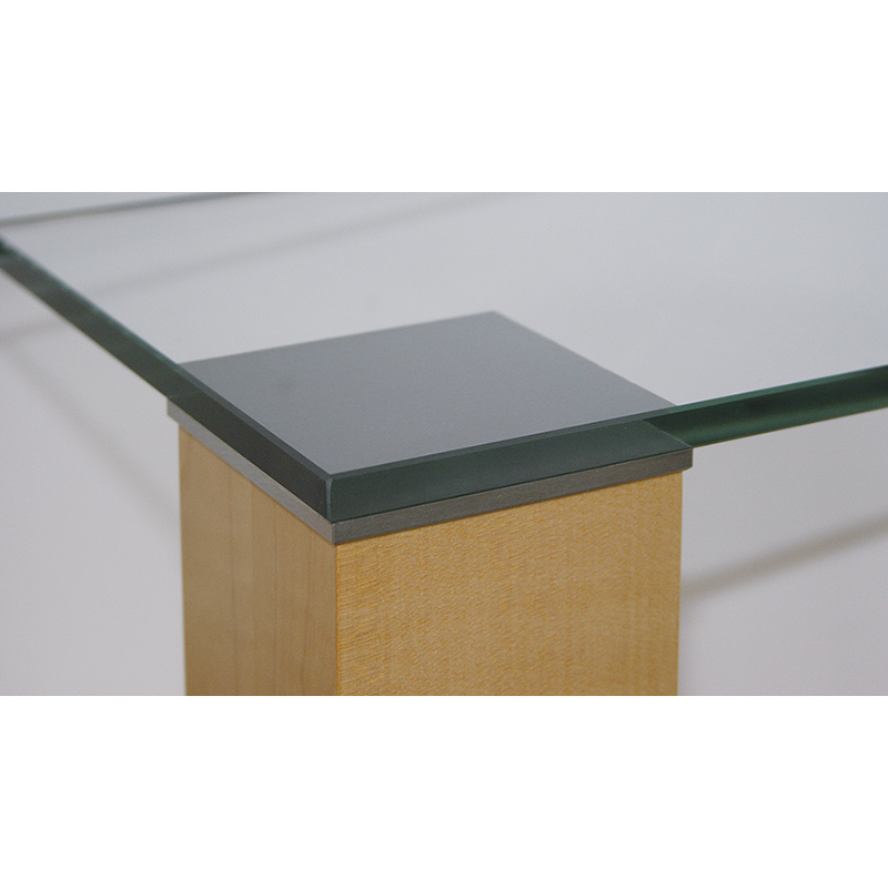 Stahl verzinkt, mit Edelstahlplatte für Glasbefestigung zum UV-Kleben, für beinahe unsichtbare Montage von vollmassiven Holz-Tischfüssen, fixieren und lösen mit nur einem Handgriff, stabile Verbindung, Tische sind für den Transport zerlegbar, Spannhülse am fertigen Fuss einbohren und einschrauben, Grundplatte mit der Glasplatte verkleben, eckbündige Montage mit der Tischkante möglich