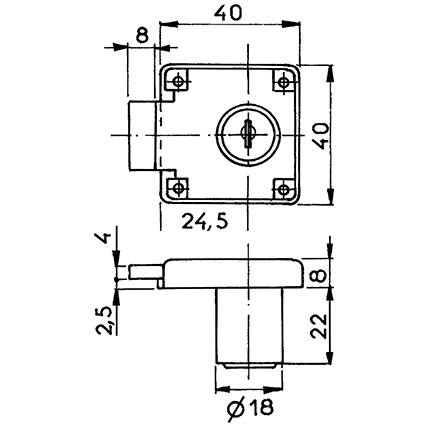 Zylinder ab Platte 22 mm vorstehend, Zylinder-Ø 18 mm,