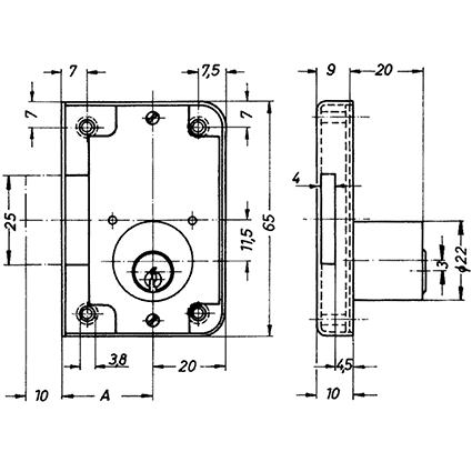 Möbelschloss, mit Zylinder, zum Aufschrauben, ohne Stulp