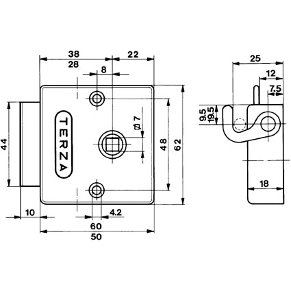 - Schrauben SK Ø 3,5 mm für Schloss, RK Ø 3,5 mm für Fanghaken.