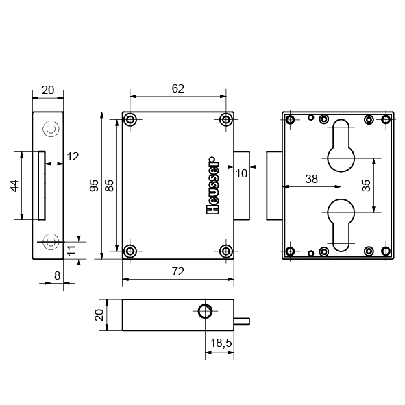 Espagnolette-Schrankschloss HEUSSER Terza, zum Aufschrauben, ohne Zubehör