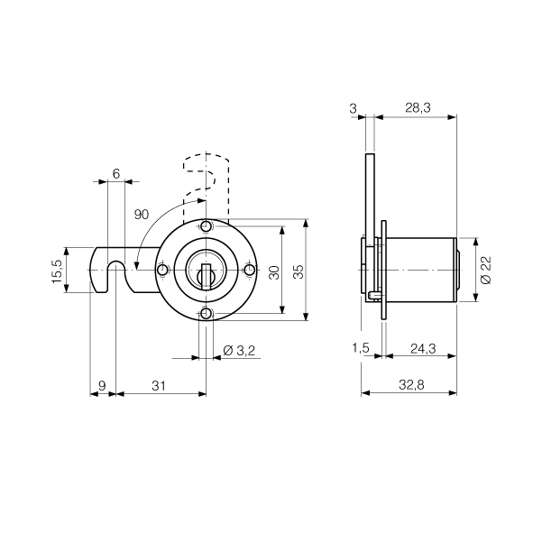 Schlüsseldrehung 360°, ohne Aufsteckrosette,