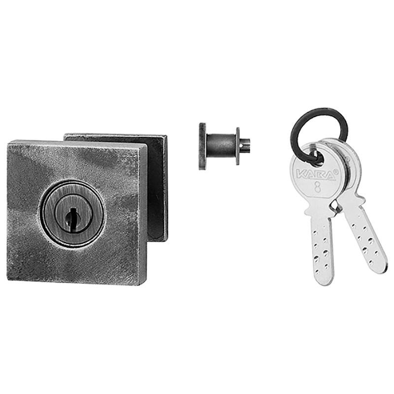 Eisen naturblank (geringe Korrosionsbeständigkeit), mit Schrauben, Zylinder Kaba 1008C/25, Zylinderolive mit 2 Schlüssel