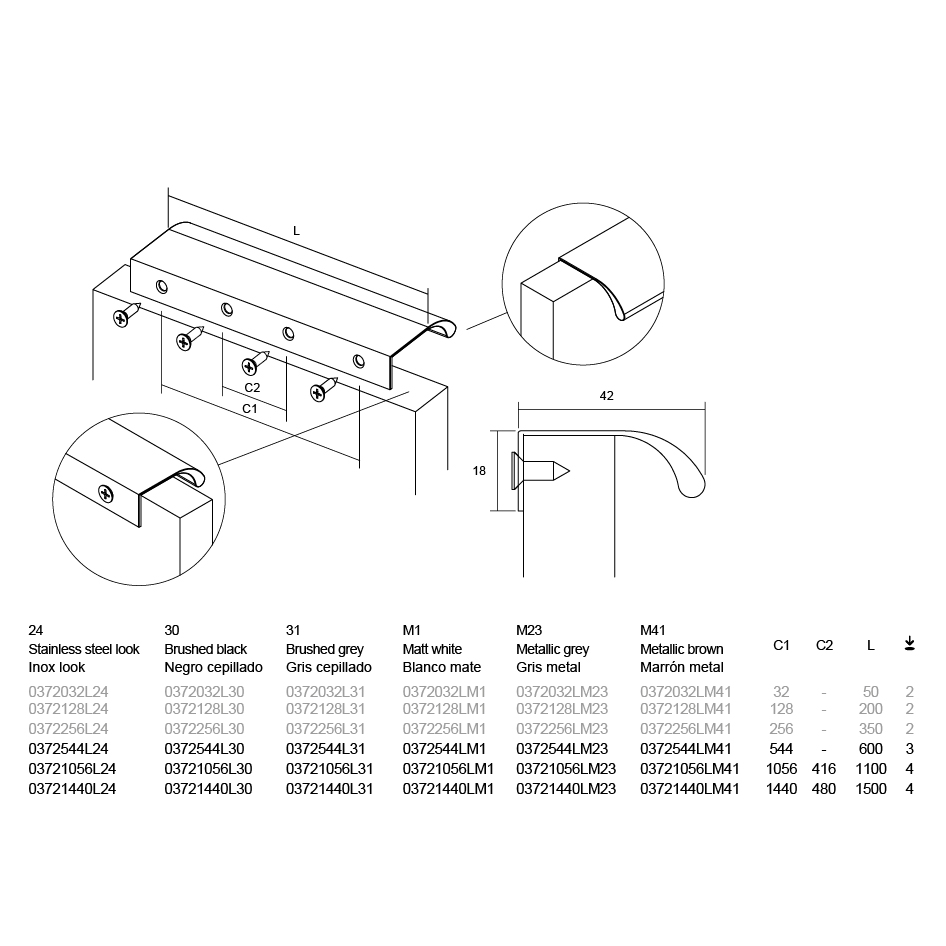 544 | 600 | 42 | Aluminium | edelstahlfinish | 0372544L24 | |