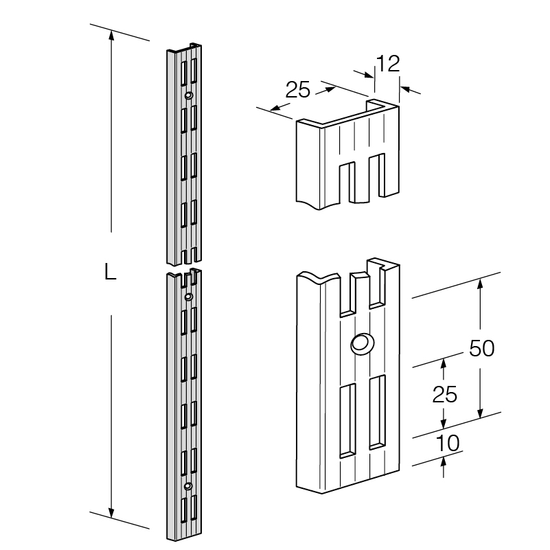Stahl lackiert, Lochung 4 x 25 mm, zweireihig gelocht