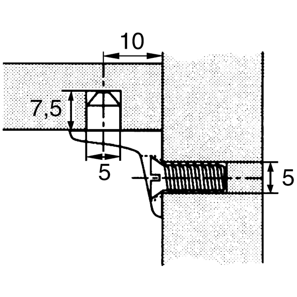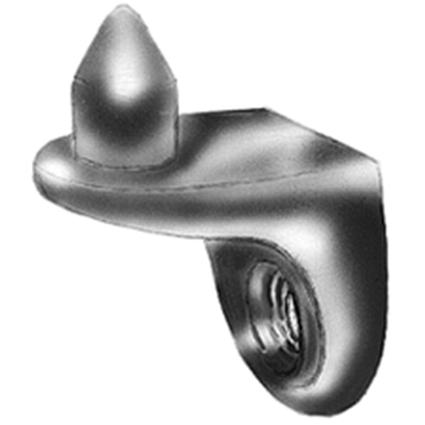 Druckguss vernickelt, schwere Ausführung, mit Loch-Ø 6 mm zur Befestigung mit Euro-Schrauben, mit zusätzlichem Zapfen für die Arretierung des Tablars
