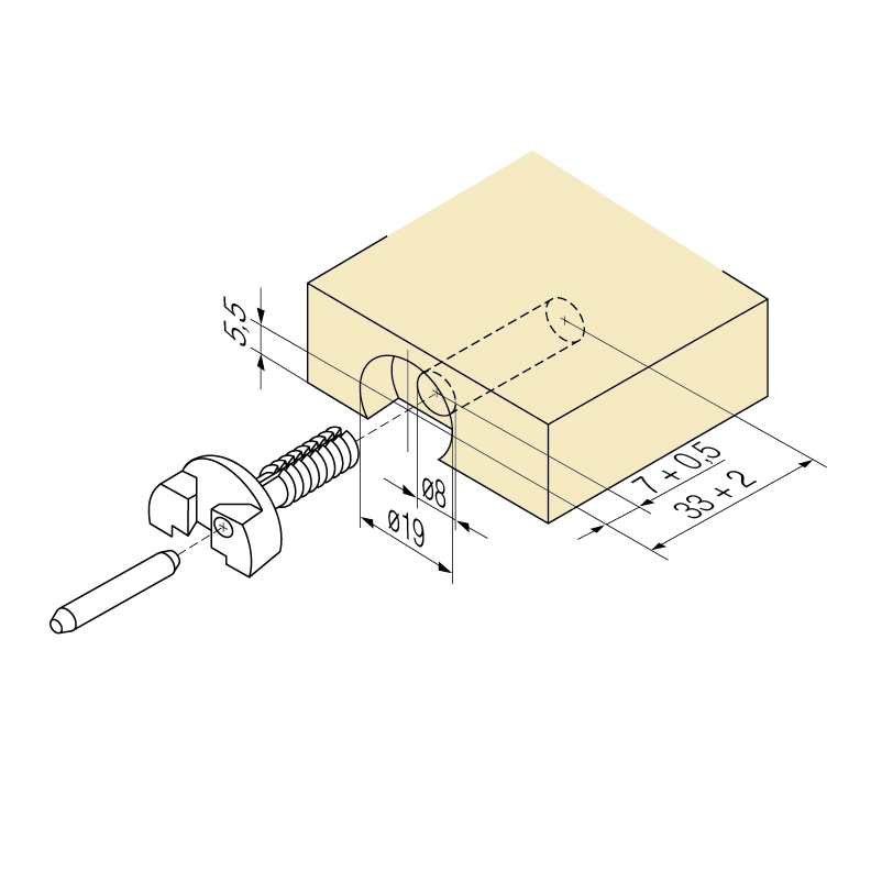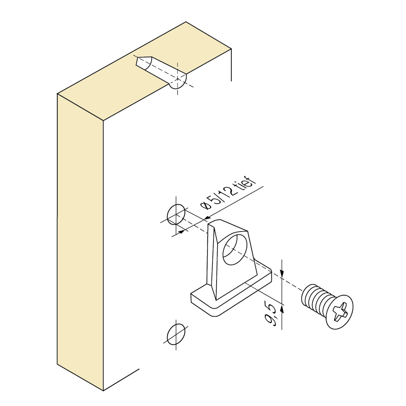 Träger Zink vernickelt, zum Befestigen mit Euro-Rasterschrauben, Gehäuse Kunststoff weiss, Spreizstift Stahl, ideal für freistehende Tablargestelle