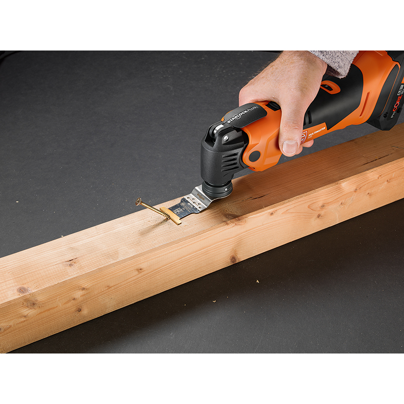 Lieferumfang: 1x E-Cut Long-Life Sägeblatt (10 mm), je 2x E-Cut Long-Life Sägeblatt (35 & 65 mm), 1x E-Cut Carbide Pro Sägeblatt (32 mm), 1x HM-Sägeblatt (Ø 75 mm), 1x HM-Raspel (Dreieckform), 1x Spachtel, 1x Schleifplatte gelocht, je 5x Schleifblätter gelocht (K60, 80, 120, 180) 1x Absaugvorrichtung, im Werkzeugkoffer