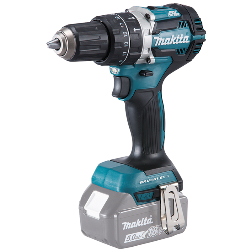 Links- und Rechtslauf, Aluminium-Getriebegehäuse, ohne Kohlebürsten, verstärkter Feuchtigkeits- und Staubschutz mit dem XPT-System, Vollmetall-Planetengetriebe, Schiebeschalter für Drehrichtungsänderung im Handgriff integriert, Drehmoment in 2x 21 Stufen einstellbar, mit Bohrstellung, abschaltbares Schlagwerk, automatische Spindelarretierung für einhändigen Werkzeugwechsel, Rutschkupplung und Motorbremse, temporisierte Doppel-LED-Beleuchtung, Griff mit weichem Belag für hohen Arbeitskomfort, Gürtelclip, ohne Akku, ohne Ladegerät,