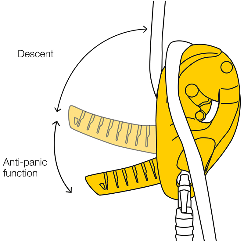 aus Aluminium, Stahl und Polyamid, gelb, selbstbremsendes Abseilgerät ist vorwiegend für die Höhenarbeit und für schwer zugängliche Bereiche bestimmt, es verfügt über einen ergonomisch geformten Hebel, mit dem sich der Abseilvorgang bequem steuern lässt, die integrierte Anti-Panik-Funktion und die Sicherheitssperre reduzieren das Unfallrisiko im Falle eines Bedienungsfehlers, das AUTO-LOCK-System ermöglicht es dem Anwender, sich am Arbeitsplatz zu positionieren, ohne den Hebel betätigen und das Gerät abbinden zu müssen, nach der Blockierung kann ohne Betätigung des Hebels Seil eingezogen werden, der Sicherheitsclip ermöglicht es, das Gerät beim Einlegen des Seils am Gurt eingehängt zu lassen, das Abseilgerät ist für Seile mit einem Durchmesser von 10 bis 11,5 mm geeignet und ermöglicht das Handling von Lasten bis zu 250 kg