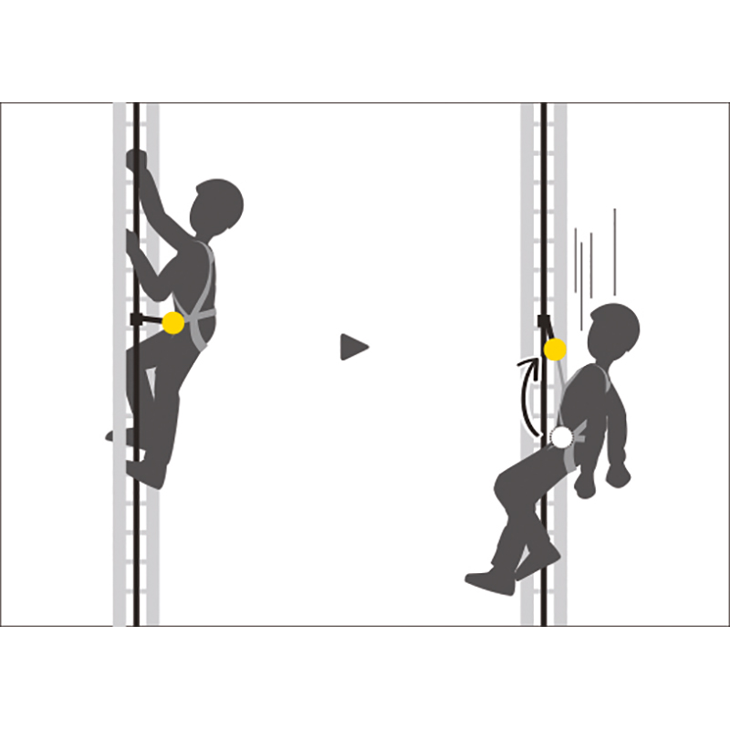aus Aluminium, Edelstahl und Polyamid, mitlaufendes Auffanggerät ist darauf ausgelegt, das Handling für den Anwender beim Aufstieg am Seil zu erleichtern, bei normaler Verwendung folgt das Gerät ohne manuelles Eingreifen automatisch den Bewegungen des Anwenders am Seil, bei einem Sturz oder abrupter Beschleunigung blockiert das Auffanggerät am Seil und stoppt den Anwender, die integrierte Blockierfunktion ermöglicht es dem Anwender, das Gerät zu stoppen, um die Sturzhöhe zu reduzieren, der Verbindungsarm schützt beim Passieren von Zwischensicherungen vor dem Verlust des Geräts, kann zusammen mit einem Falldämpfer verwendet, um entfernt vom Seil arbeiten zu können