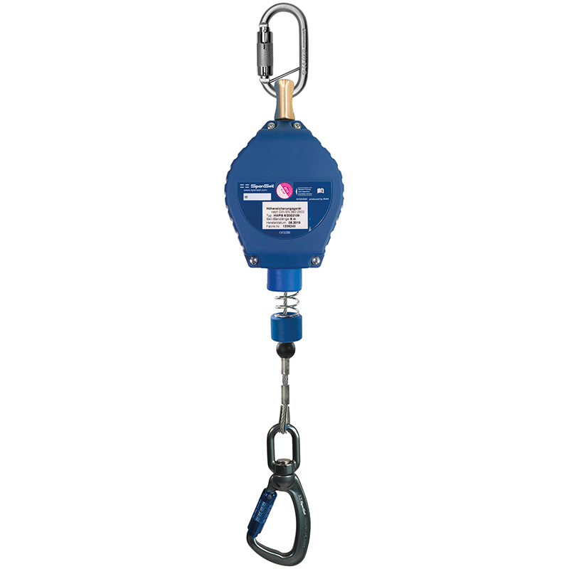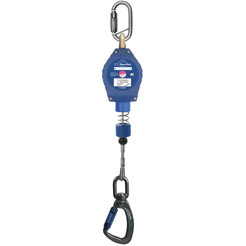 les antichutes Saverline avec boîtier plastique robuste et câble d'acier galvanisé sont agréés pour une utilisation verticale et horizontale, le point de suspension pivotant en fonte d'aluminium de Ø 16 mm empêche la torsion du câble d'acier et est fourni avec un mousqueton pivotant avec indicateur de chute, le câble métallique de Ø 4,8 mm incorporé dans l'antichute a été soumis à un essai de chute par-dessus le bord et a satisfait aux exigences d'essai supplémentaires de la norme VG11 CNB/P/11.060 pour EN360