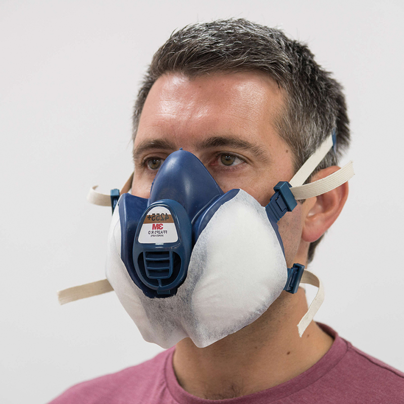 zum Einsatz als Vorfilter für eine längere Nutzungsdauer der Hauptpartikelfilter von wartungsfreien 3M™ Mehrweg-Atemschutzmasken, fängt grössere Sprühpartikel ein, bevor sie die Filter erreichen und verstopfen