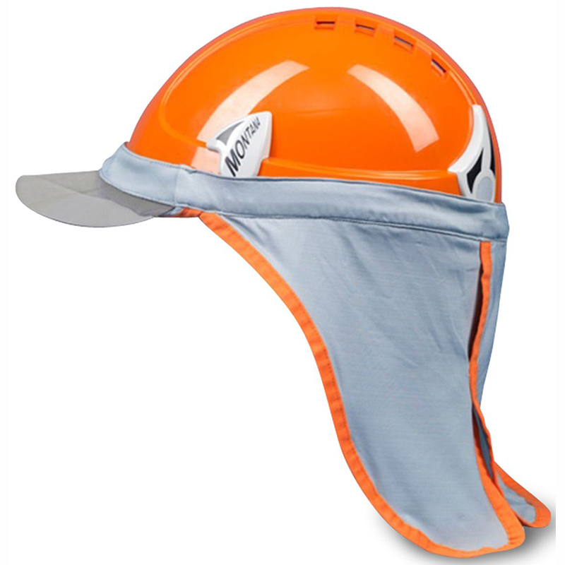 Stirnblende mit Nackenschutz als Zusatz für Schutzhelme, schützt vor schädlicher UV-Strahlung (UPF 50+), hautfreundlicher Stoff mit antibakteriellen Eigenschaften, die spezielle Eigenschaft des Stoffes sorgt für Kühl-Effekt, passt auf alle handelsüblichen Schutzhelme, Lüftungsschlitze sorgen für eine angenehme Belüftung, die biegsame Stirnblende gibt beim Anstossen nach