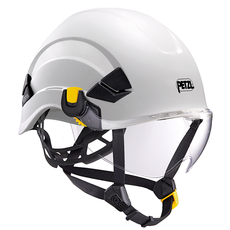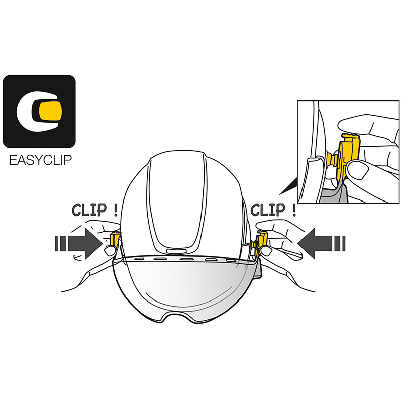 Klarvisier, kratzfest und beschlagfrei, für Brillenträger geeignet, schützt die Augen vor umherfliegenden Teilchen und Spritzern, schnell und einfach anzubringen dank des mitgelieferten EASYCLIP-Befestigungssystems, schneller Wechsel von der Arbeitsposition in die Transportposition, das Visier wird auf den Helm geschoben