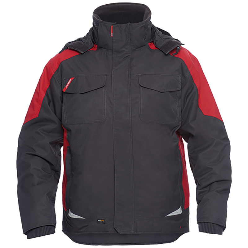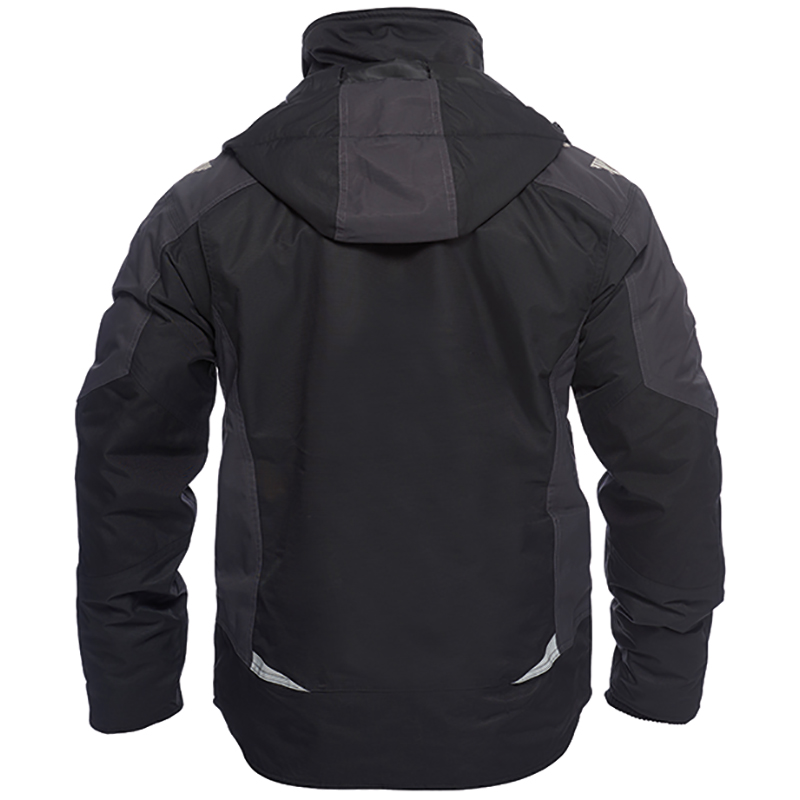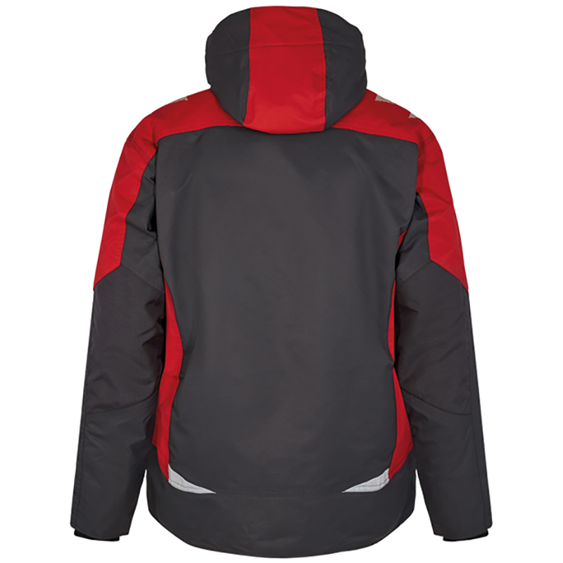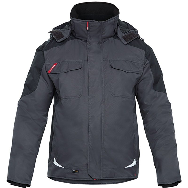 wasserdicht und atmungsaktiv, hoher Kragen und verlängertes Rückenteil, mit CORDURA® verstärkte Ellbogen, viele funktionelle Taschen, u. a. grosse Einschubtaschen mit Reissverschluss, Windfang an Ärmeln und Bund, abnehmbare Kapuze, Reflexapplikationen auf den Schultern