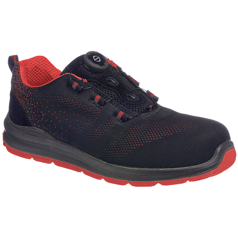 Schnellverschluss mit Drahtschnürsystem für eine sichere Passform, textiles Obermaterial für mehr Tragekomfort, ideal für trockene und warme Bedingungen, Dual-Density-Laufsohle, Kunststoffkappe für erhöhten Schutz, durchtritthemmende metallfreie Zwischensohle, antistatisch, Kraftstoff und Öl beständige Sohle, energieabsorbierender Fersenbereich, rutschhemmende Sohle