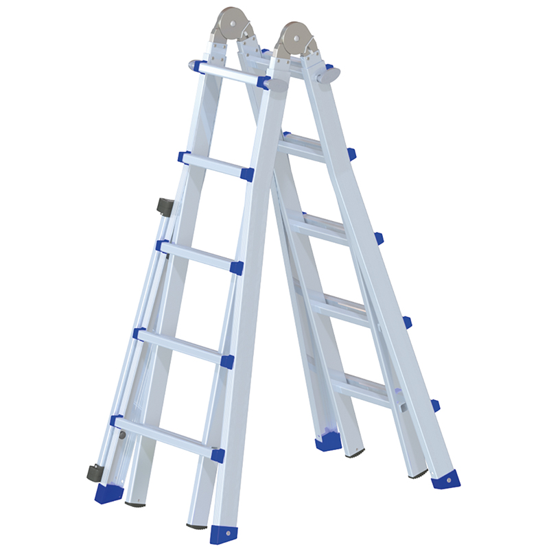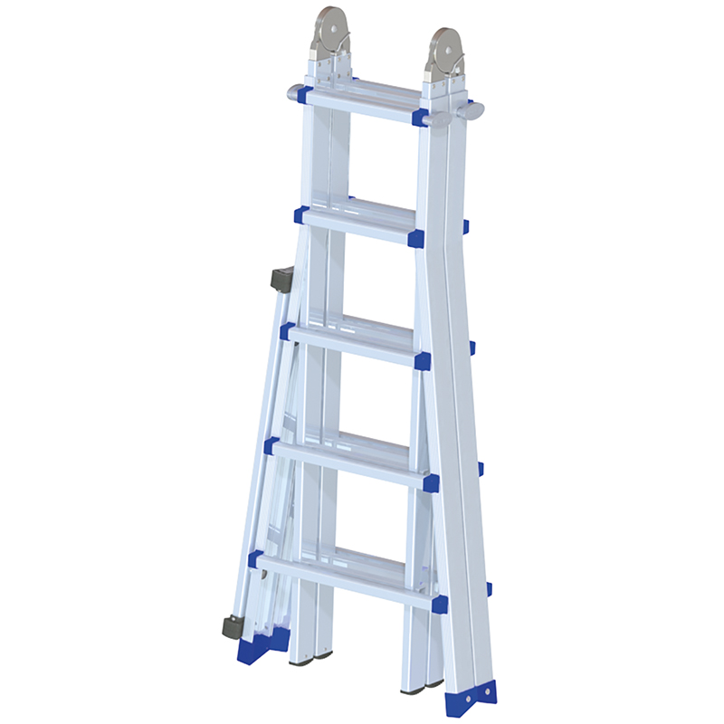 leichte Bedienung, als Anlege- und Bockleiter, sowie Treppenleiter einsetzbar, geringer Platzbedarf für Transport und Lagerung, ideal für den Einsatz auf Treppen, in Hallen und Sälen etc., verstärkter Spross bei Schweissverbindung, starkes, selbstarretierendes Stahlgelenk, Arretierungsbolzen aus Aluguss