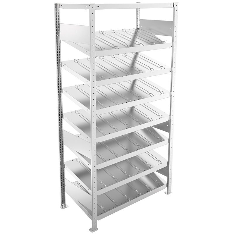 verzinkt, Fachlast 200 kg, ideal für Kartonware wie Schraubenpäckchen oder Kunststoffkästen mit loser Ware, perfekter Überblick über Bestände, Ware kann nach vorne zur Entnahmeseite hingleiten