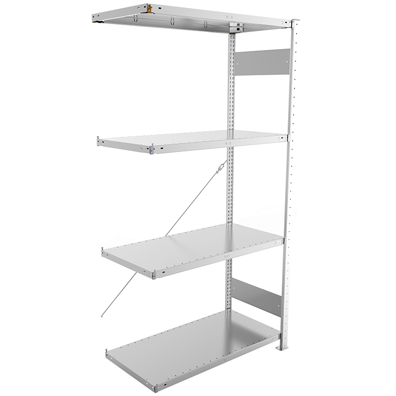 verzinkt, Fachlast 150 kg, schnell und ohne Werkzeug auf- und umbaubar, universell einsetzbar z. B. für Lager, Werkstatt, Magazin, Verkaufsraum, Keller, Büro etc., Fachböden vorbereitet für den Einbau umfangreichen Systemzubehörs