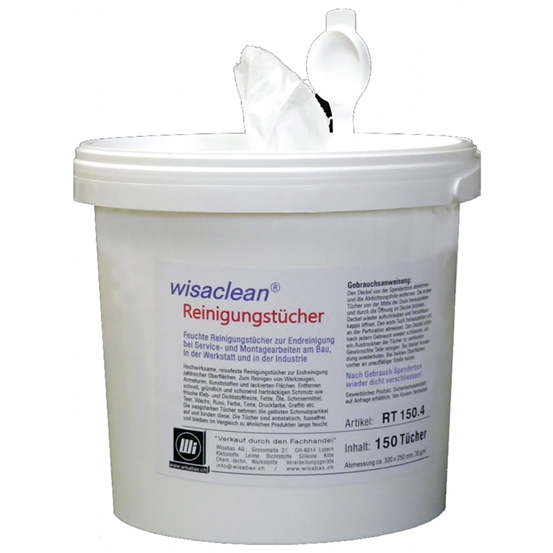 weiss, feuchte hochwirksame, reissfeste Reinigungstücher für die Endreinigung zahlreicher Oberflächen, zum Reinigen von Werkzeugen, Armaturen, Kunststoffen und lackierten Flächen, entfernen schnell, gründlich und schonend hartnäckigen Schmutz wie frische Kleb- und Dichtstoffreste, Fette, Öle, Schmiermittel, Teer, Wachs, Russ, Farbe, Tinte, Druckfarbe, Graffiti etc., die saugstarken Tücher nehmen die gelösten Schmutzpartikel auf und binden diese, die Tücher sind antistatisch, fusselfrei und bleiben im Vergleich zu ähnlichen Produkten lange feucht, Tuchgrösse 300 x 250 mm, im Kunststoffeimer