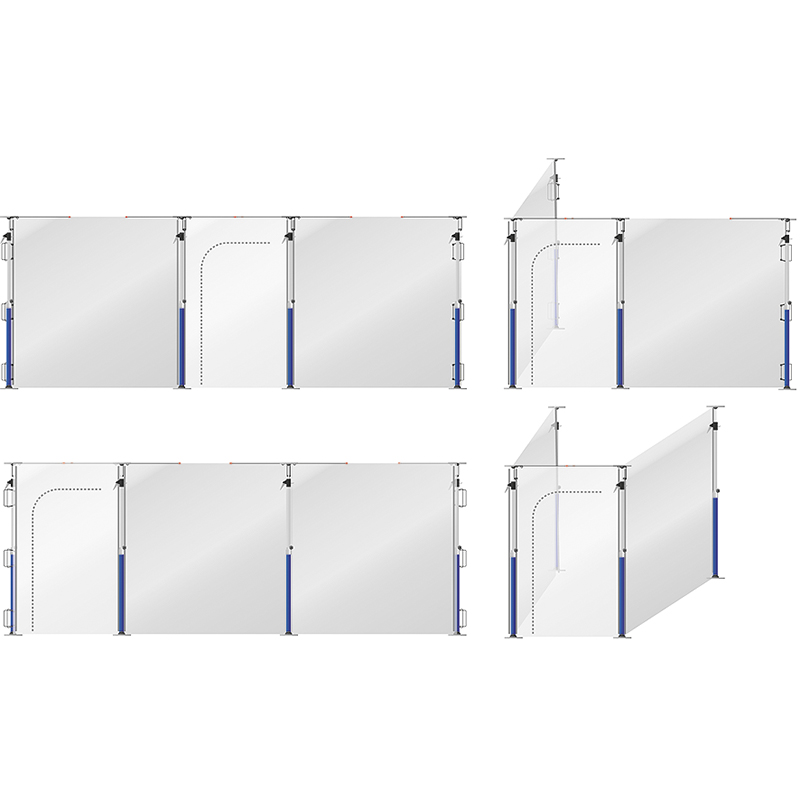 zum Erstellen einer professionellen Staubschutzwand oder Staubschutztür, die Folie wird mit Einhand-Deckenstütze zwischen Boden und Decke fixiert und zur Wand oder Tür hin mit den Sideclamps und zur Decke hin mit den Topclamps abgedichtet, Wände und Türen werden einfach und rationell mit dem angenähten Klettverschluss staubdicht verbunden, dadurch kann das System beliebig verlängert werden