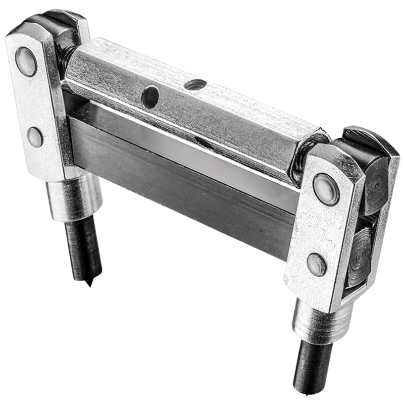 für rationelles Verleimen und Fixieren von Eckbänken, Arteitsplatten, Handläufen, Blockrahmen, Türverkleidungen, Rundbogen, Sockeln, Blenden, usw., von der Rückseite hergebohrt