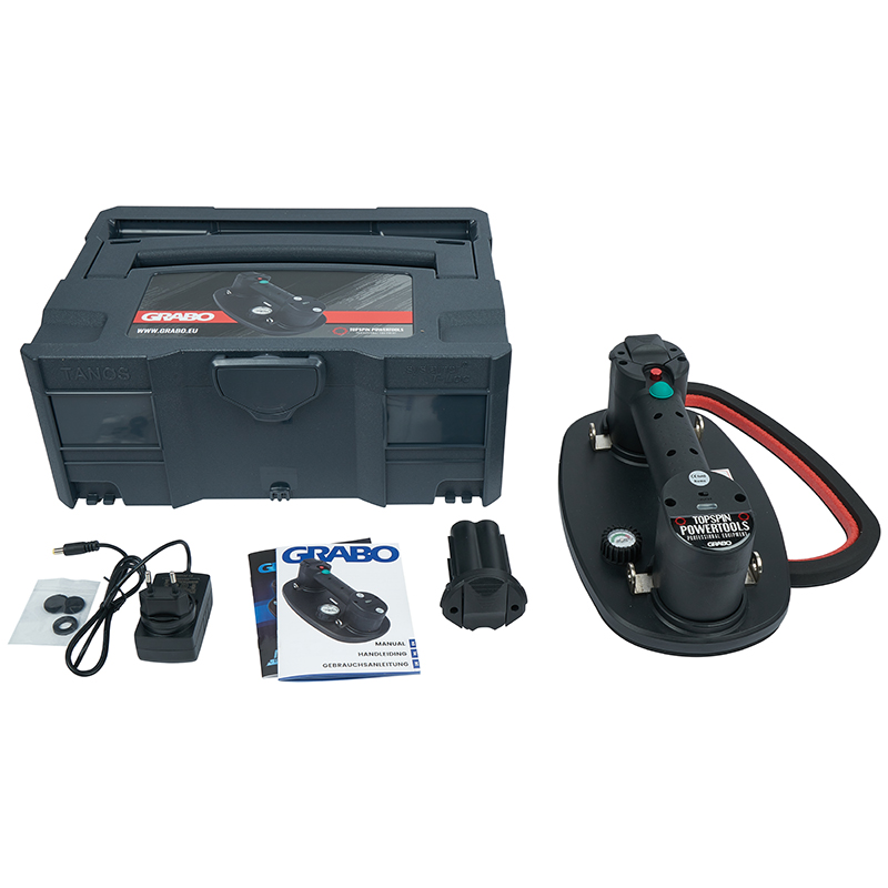 völlig elektrisch akkubetriebene Vakuum Handsauger, der Handsauger Typ PLUS ist ein tragbarer elektrischer Vakuum-Handsauger mit dem sowohl Keramik- und Naturstein-Fliesen, Glas-Scheiben, Bleche, Spanplatten und Gipskartonplatten, als auch Möbel und Grossgeräte gehalten und getragen werden können, die im Handgriff verbaute Vakuumpumpe erzeugt den erforderlichen Unterdruck, um das Werkstück zu halten, das installierte Manometer dient der Überwachung, Hebekraft bis zu 170kg (abhängig von den angesaugten Materialien)