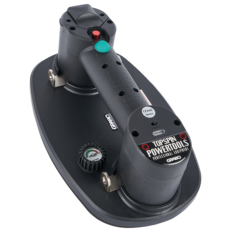 völlig elektrisch akkubetriebene Vakuum Handsauger, der Handsauger Typ PLUS ist ein tragbarer elektrischer Vakuum-Handsauger mit dem sowohl Keramik- und Naturstein-Fliesen, Glas-Scheiben, Bleche, Spanplatten und Gipskartonplatten, als auch Möbel und Grossgeräte gehalten und getragen werden können, die im Handgriff verbaute Vakuumpumpe erzeugt den erforderlichen Unterdruck, um das Werkstück zu halten, das installierte Manometer dient der Überwachung, Hebekraft bis zu 170 kg (abhängig von den angesaugten Materialien)