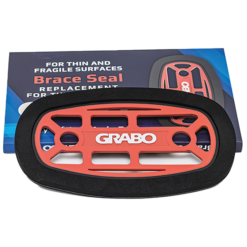 Ersatzdichtung für den GRABO, speziell für dünne Materialien, diese Dichtung mit niedrigem Profil hat einen vollständigen Silikonfussabdruck, der fest gegen das Material in der Vakuumkammer gedrückt wird, so dass es eine "Klammer" gibt, die verhindert, dass das Material zu sehr in den GRABO gesaugt wird, dies kann dazu führen, dass das Material platzt, sich biegt oder bricht, speziell für zerbrechliche, empfindliche Materialien wie Glas, XXL-Fliesen, für Materialien, die dünner als 6 mm sind