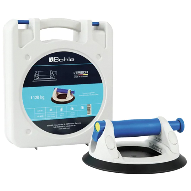 überzeugt sowohl in der Gestaltung als auch im Komfort, er ist mit einer aus der Entfernung deutlich sichtbaren Vakuumsicherheitsanzeige sowie mit zahlreichen funktionalen Details ausgestattet, über den hochwertigen Pumpmechanismus lässt sich das Vakuum besonders schnell aufbauen, die grosse Ventiltaste sorgt für eine schnellere Belüftung, um das Vakuum abzubauen, der Saugheber lässt sich dadurch besser ans Material anbringen und nach dem Einsatz leichter lösen, ein erhöhter Griffbereich bietet zudem besten Tragekomfort, für noch mehr Stabilität und Schutz sorgt ein Kunststoffring, der über der Gummischeibe platziert ist, hält grosse Lasten bis zu 120 kg und eignet sich für alle Materialien und Objekte mit gasdichten Oberflächen