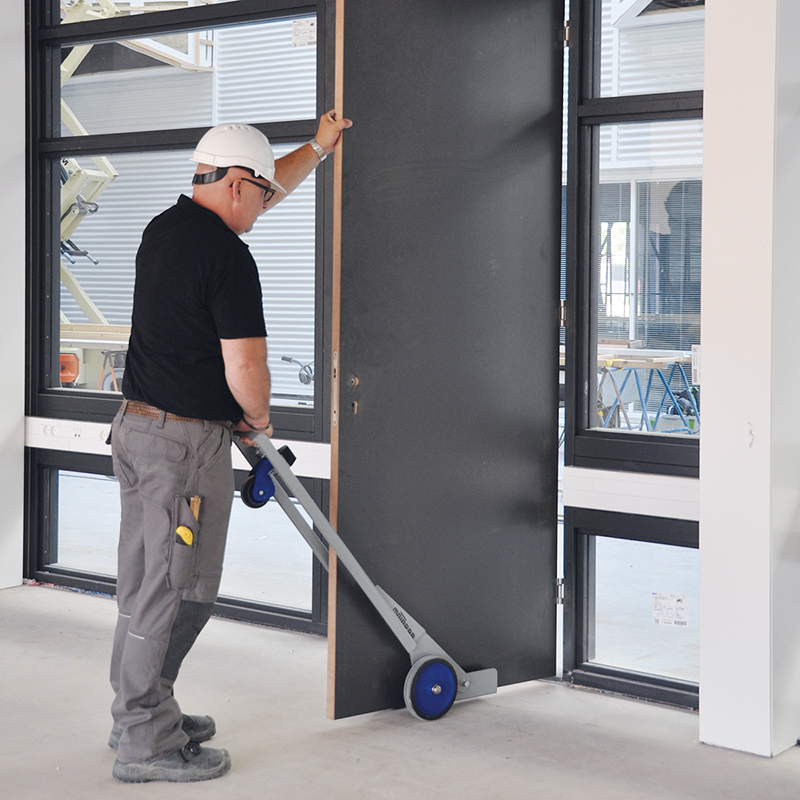 Für das Heben, den einfachen und schnellen Transport sowie den Einbau von schweren Haustüren, Zimmertüren und hohen Fenstertüren. Mit der besonderen Hebelvorrichtung können Türen und hohe Fenstertüren schnell gehoben und problemlos von A nach B transportiert werden. Mit einer Tragkraft von 150 kg ist das Gerät bestens für alle Einsätze im Innen- und Aussenbereich geeignet. Die stabilen Transport- und Lenkrollen befördern schwere Türen und Platten, beinahe lautlos, einfach und schnell an ihren Einsatzort. Die geringe Abmessung ermöglicht den einfachen Transport von extra breiten Türen, Haustüren und Fenstertüren auf engen Gängen, schmalen Hausfluren und in winkeligen Wohnungen.