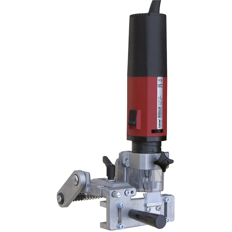Schnelle, exakte Feineinstellung durch Drehen des Motors, Anschlagsystem ermöglicht sichere Maschinenführung, mit Absaugöffnung,