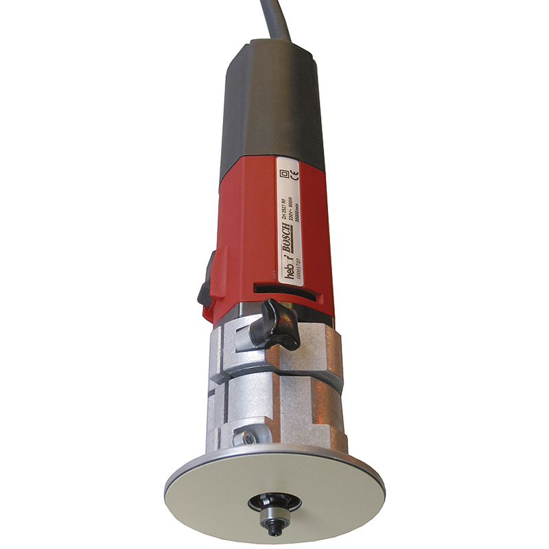 für präzises Abrunden von Ecken und Kanten, sichere Führung dank grosser runder Führungsplatte, schnelle und exakte Feineinstellung der Fräserposition durch einfaches drehen des Motors, mit Rundanschlag,