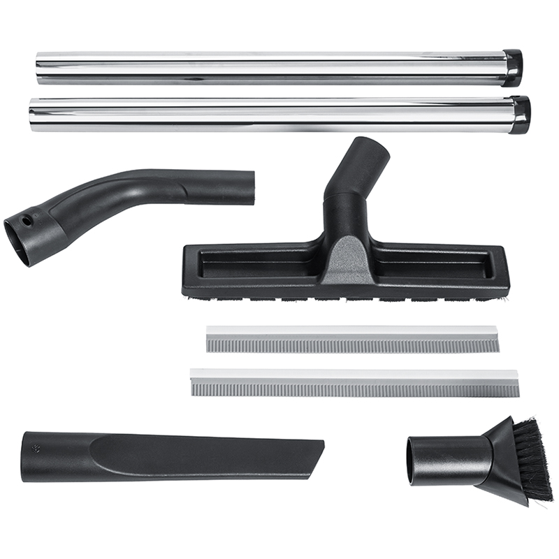 Lieferumfang: Saugschlauch 4 m, Vliesfiltersack, Flachfaltenfilter, 2-tlg. Saugrohr aus Metall, Kombidüse mit Gummilippe, Fugendüse, Saugpinsel, Krümmer