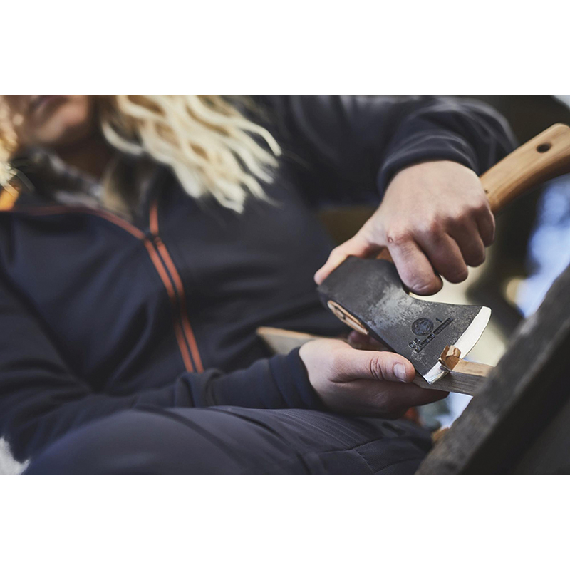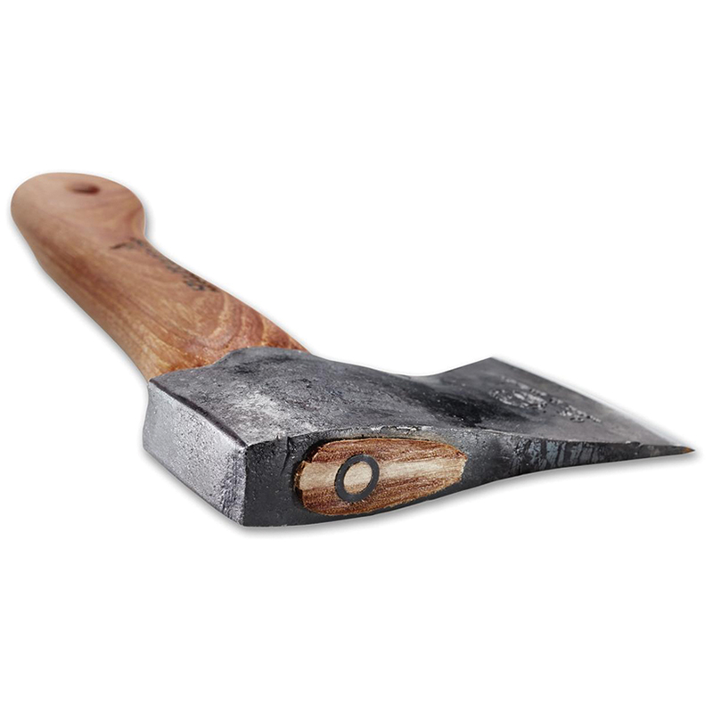 hervorragend geeignet zum Wandern in den Bergen oder im Wald, einfach zu bedienen und einfach zu tragen, handgeschmiedet und aus schwedischem Qualitätsstahl gefertigt, Holzgriff aus amerikanischer Hickory, mit Leinöl behandelt, konvexe Schleifkante, die Schneide ist geschliffen, poliert und gebrauchsfertig, mit Leder Schneidschutz