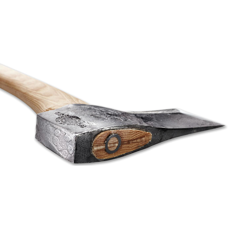 robuste Spaltaxt für schwerere Aufgaben wie das Spalten von Baumstämmen und Holz, durch die konvexe Form des Kopfes lässt sich das Holz leicht spalten, langer und gerader Griff aus amerikanischer Hickory, um maximale Geschwindigkeit und Kontrolle beim Spalten zu erreichen, die Axt ist handgeschmiedet und aus schwedischem Qualitätsstahl hergestellt, die Schneide ist geschliffen, poliert und gebrauchsfertig, mit Kantenschutz aus Leder