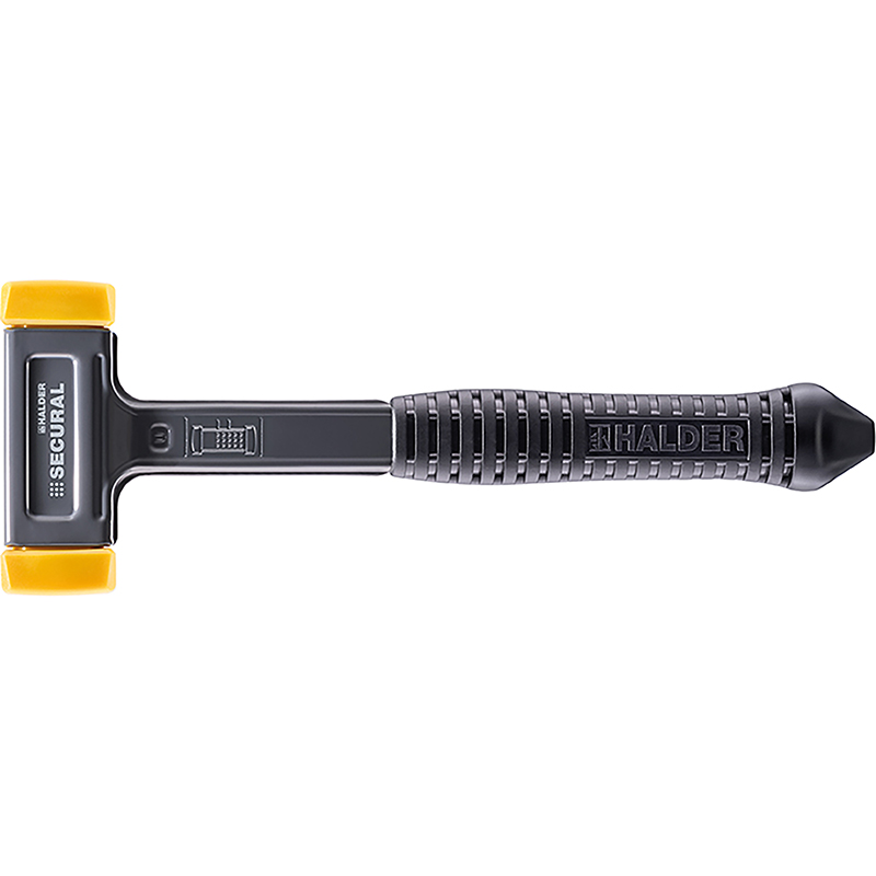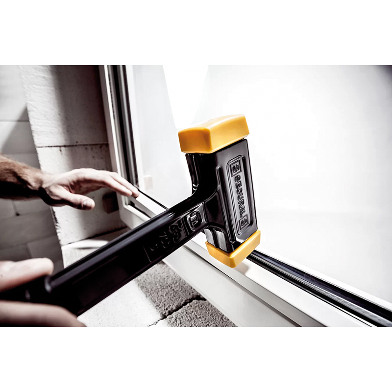 mit speziell geformtem Griffende zum Eindrücken von Gummidichtungen unterschiedlichster Grössen, auswechselbare, rechteckige, leicht überstehende, mittelharte Schlageinsätze aus Polyurethan, ermöglicht geräuscharmes und komplett rückschlagfreies Arbeiten, sehr hohe Schlagkraft bei geringem Gewicht, absolut bruchsichere Verbindung zwischen Hammerkopf und Stiel aufgrund des längsgeschweissten Gehäuses