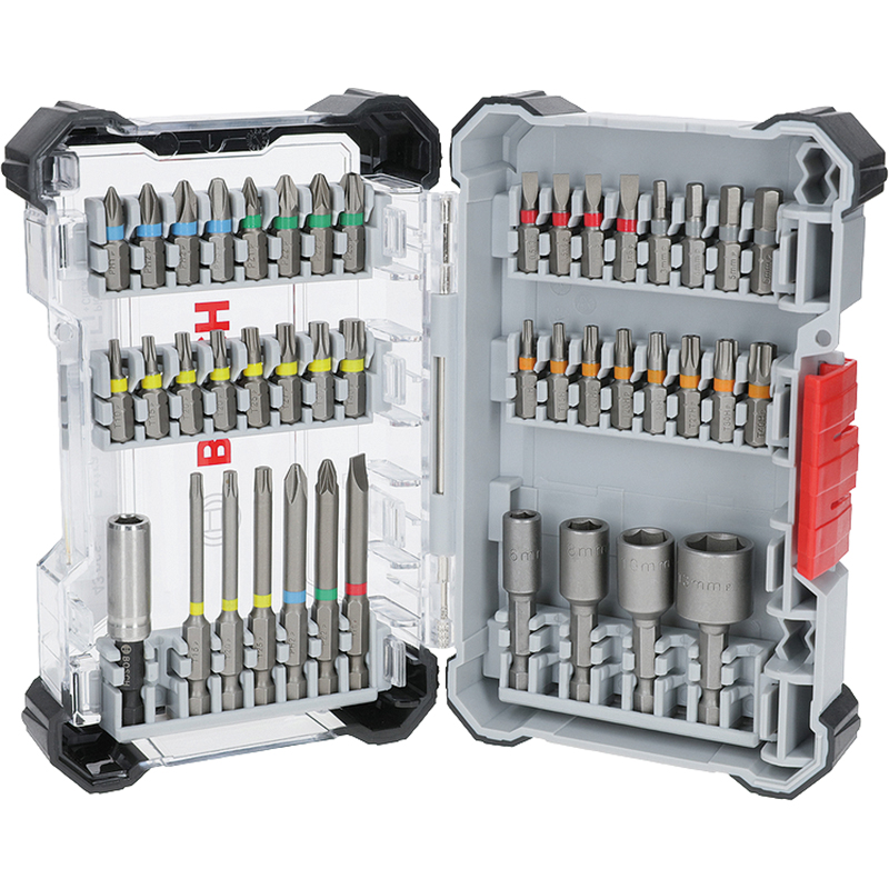 extra Hard-Schrauberbits und -Steckschlüsseln, in einer praktischen und robusten Staubox, die sowohl guten Überblick als auch sichere Lagerung und Transport ermöglicht,