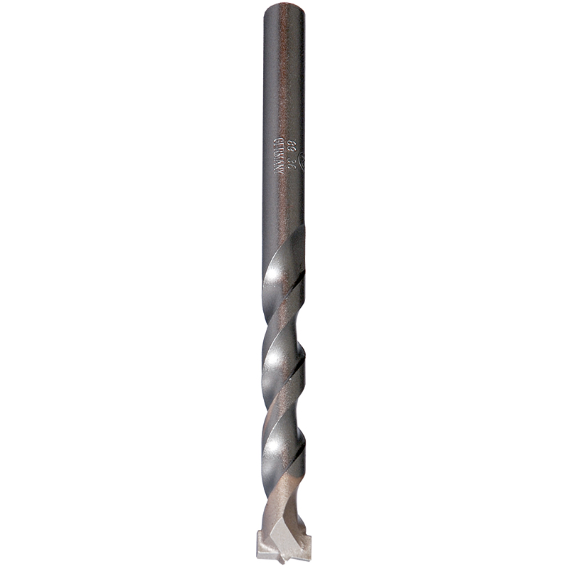 speziell geschliffene HW-Schneide, mit zylindrischem Schaft, für drehenden und schlagenden Einsatz in Bohr- und Schlagbohrmaschinen, problemloses zentrisches Anbohren auf harten, glatten Oberflächen, rasche Bohrmehlabfuhr durch grosses Spiral-Nut-Volumen, für Plättli, Marmor, Mauerwerk, Holz, Kunststoff, Leichtbaustoffe