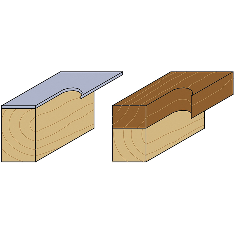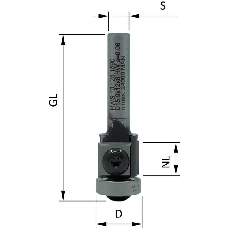 mit 2 Wendeplatten HW, umfangschneidend, mit auswechselbarem Kugellager, zum Bündigfräsen von Kunststoff- und Furnierkanten, Falzen und Kopieren