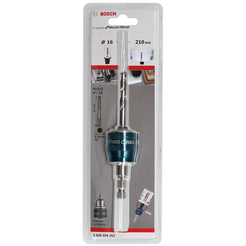 mit 8,7 mm 6-Kant-Aufnahmeschaft, für Ø 16-210 mm, mit Zentrierbohrer HSS-G