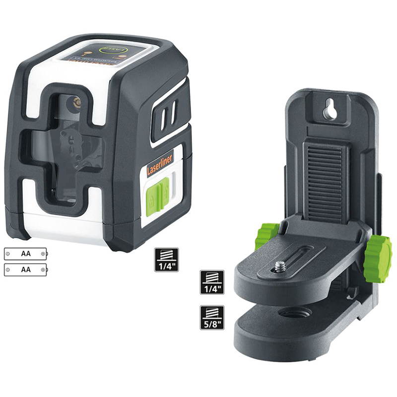 dieser Kreuzlinien-Laser projiziert ein gut sichtbares grünes Laserkreuz zum genauen horizontalen und vertikalen Ausrichten von Gegenständen, er bietet ausserdem eine manuelle Neigungsfunktion zum einfachen Anlegen von Gefällen, der im Lieferumfang enthaltene PocketWallHolder ist eine multifunktionale, höhenverstellbare und magnetische Halterung zum Anbringen des Lasers an Wänden, Metallkonstruktionen und auf Stativen mit 1/4"- und 5/8"-Gewinde, mit dem integrierten Handempfänger-Modus kann der Laser auch bei Aussenanwendungen und Ausrichtarbeiten auf grosse Distanzen eingesetzt werden, das Gehäuse des Lasers besteht zu einem Grossteil aus recyceltem Kunststoff und leistet einen wertvollen Beitrag zur Nachhaltigkeit,