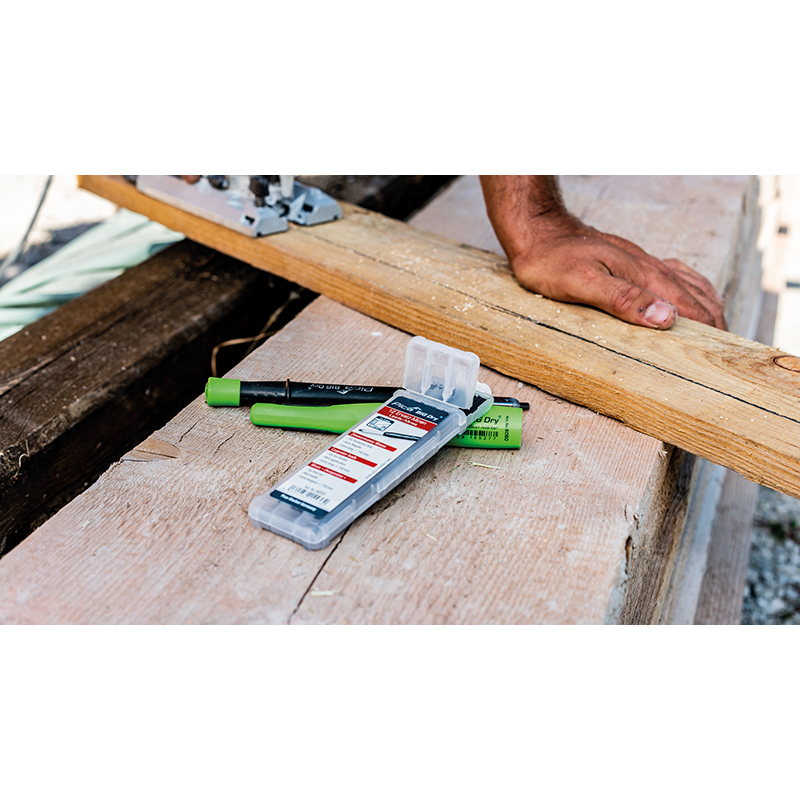 ideal für genaue Markierungen auf trockenem Holz, Rechteckminen mit 2 x 5 mm im Querschnitt, 150 mm lang, im Minenetui zur sicheren Aufbewahrung