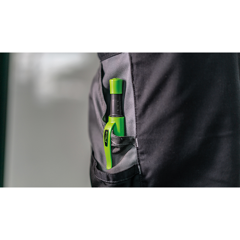 automatischer Minenvorschub auf Knopfdruck, einzigartige High-Tech Druckmechanik, maximaler Staub- und Nässeschutz, für robuste Rechteck-Minen mit 2 x 5 mm im Querschnitt: ideal zum Anzeichnen, präzise Kantenführung beim Anzeichnen, extrem lange Markierleistung, kein lästiges Abspitzen des Holzes nötig: einfach Nachdrücken, immer sofort einsatzfähig, Minen sind einfach wechselbar, ausgestattet mit FOR ALL Grafitmine 2B, im praktischen Köcherschoner mit extra starkem Spezial-Clip, für perfekte Einhand-Bedienung, extrem langlebig und nachhaltig dank hochwertiger Produkt-Technik und Nachfüllbarkeit