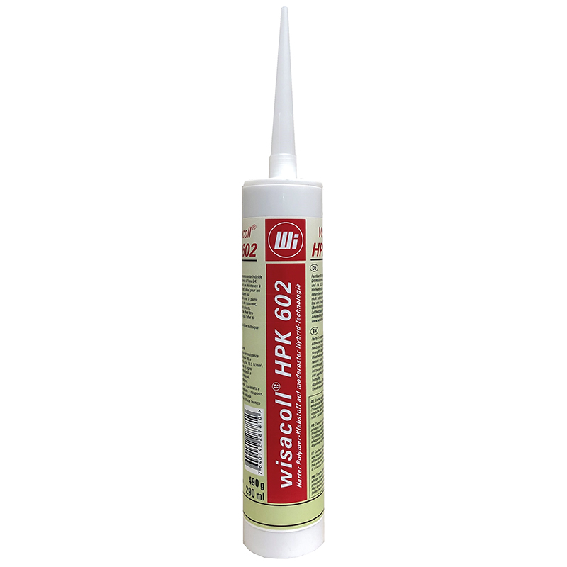 Colle de montage hybride monocomposante pâteuse avec résistance à l'eau D4, dure et résistante aux intempéries, idéale pour les matériaux en bois, cette colle polymère hybride de dernière génération extrêmement forte et de grande qualité convient pour les collages durs, constructifs, durables et résistants à l'eau dans le domaine de la construction, du montage et de l'industrie, en particulier à l'intérieur et pour les petites pièces à l'extérieur, que ce soit pour la construction de fenêtres ou de portes, pour le collage de joints de planches dans le domaine du bois, des fenêtres et des portes d'entrée, ou dans le domaine du sol comme les marches d'escalier et les plinthes, la HPK 602 est polyvalente, elle est idéale pour la fixation de supports pour les faux planchers, pour la fixation de panneaux, de barreaux de rampes d'escalier et de chevilles dans la maçonnerie ainsi que pour le collage d'assemblages d'angle dans la construction de fenêtres et de portes en aluminium, parmi ses avantages, on compte son absence de marquage, une résistance finale et une résistance à l'eau extrêmement élevées conformément à la norme EN 204 D4, le HPK 602 offre une dureté et une résistance à la traction supérieures à la moyenne, pas de retrait ou de moussage, des temps de pressage courts, et il est exempt de solvants (classe d'émission de COV A+), compatible avec la pierre naturelle, pratiquement inodore et sans silicone, il a une bonne viscosité d'application, est thixotrope et ne s'égoutte pas, peut être poncé à l'état durci, peut être peint et reverni, peut être utilisé à l'intérieur et à l'extérieur et ne provoque pas de risque de corrosion, bonne résistance aux UV, aux intempéries et au vieillissement, la consommation est faible et il est facile de le presser hors des cartouches, le Wisacoll HPK 602 adhère bien sur la plupart des supports présents dans la construction, même légèrement humides, comme les matériaux dérivés du bois, la maçonnerie, les métaux, l'aluminium, la pierre naturelle et de nombreux plastiques