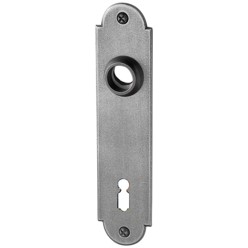 Schmiedeisen thermopatiniert®, Drückerführung 18 mm, oberes Schraubenloch bis Mitte Drückerführung 41 mm, mit Schrauben