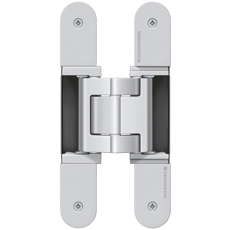 Grundmaterial bestehend aus Zinkdruckguss, Aluminium und Stahl, komplett verdeckt liegend, für ungefälzte Türen an Holz- und Stahlzargen, 3-dimensionale Verstellmöglichkeit, Seiten- und Höhenverstellung ±3 mm, Andruck ±1 mm, wartungsfreie Gleitlagertechnik, Öffnungswinkel bis 180°, Energieübertragung über 16 Adern, Aderquerschnitt 0,14 mm, Ein- und Aushängbarkeit durch entkoppelbare, verpolungssichere Steckverbindung mit integrierter Zugentlastung, max. Spannung 60 V, max. Stromstärke 0,8 A, Tragkraft bei 2 Band ca. 80 Kilo