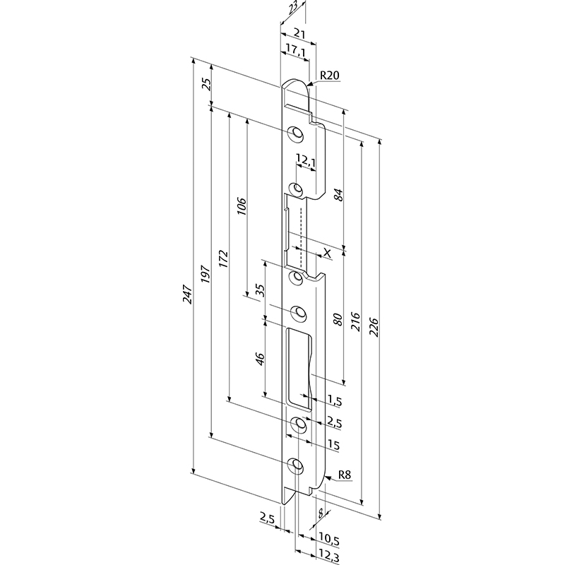 Einfrässchliessblech effeff 12C, für Elektro-Türöffner